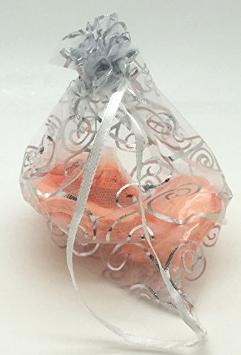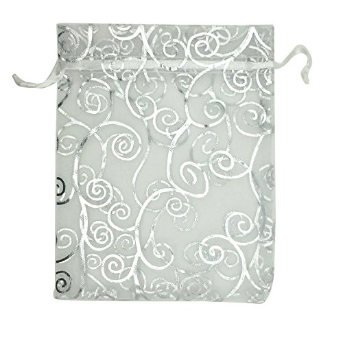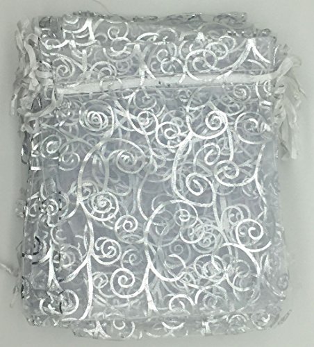 KINGWEDDING 100pcs Silver and White Print Organza Bags 3*4 Inches