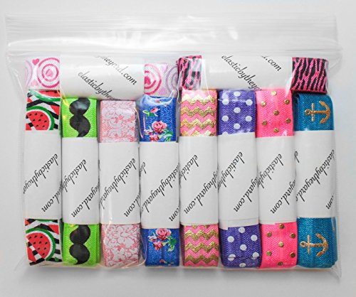 Grab Bag Printed Fold Over Elastic - 10 Yards- FOE - 5/8 Fold Over Elastic - PRINTED - Headband Satin Elastic, Wholesale Elastic
