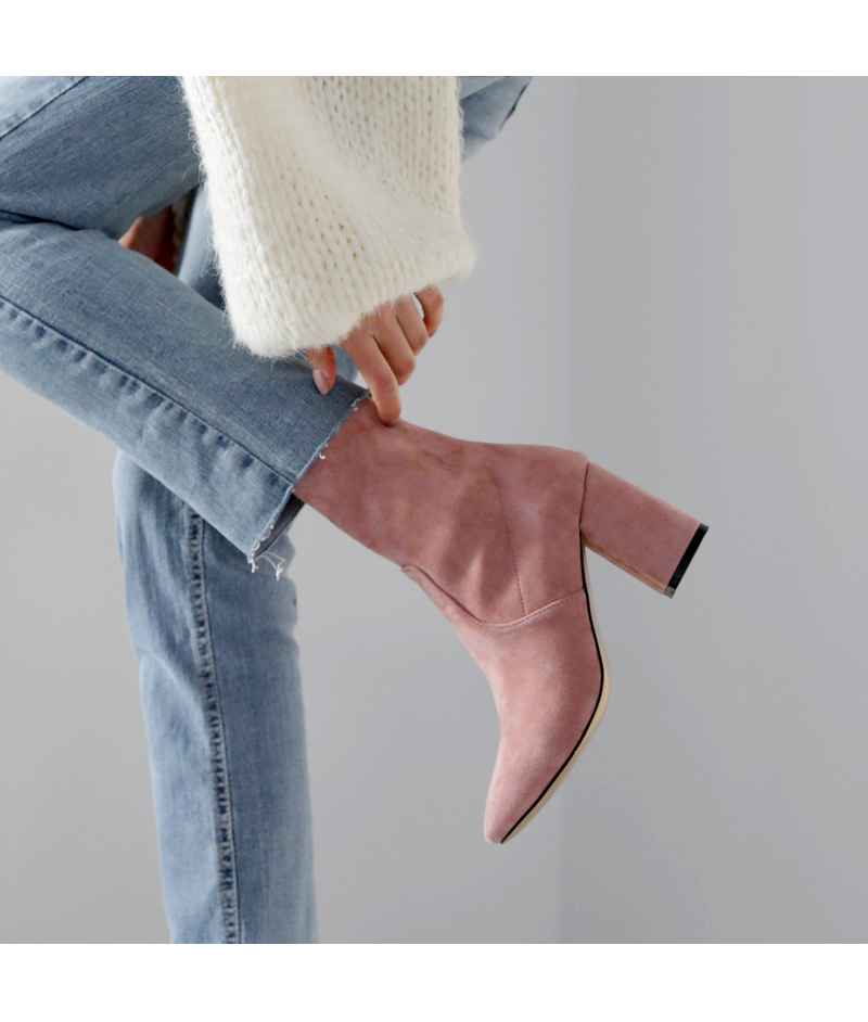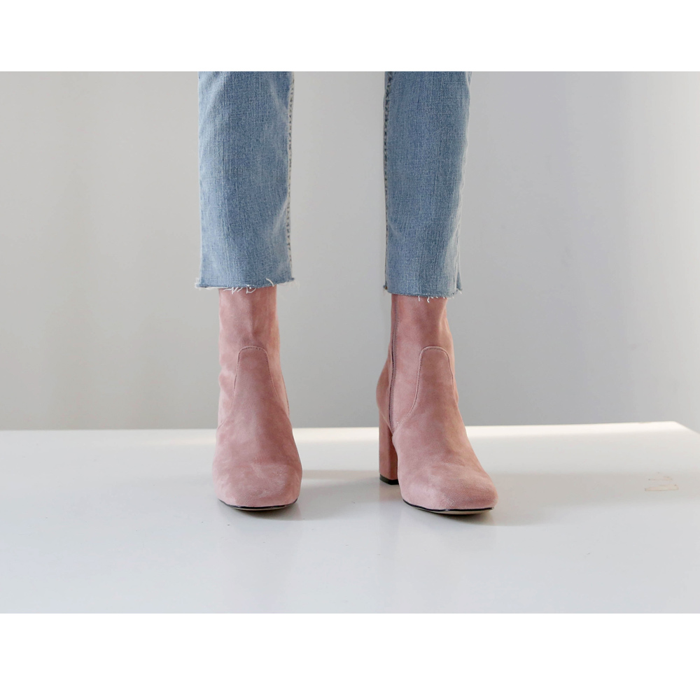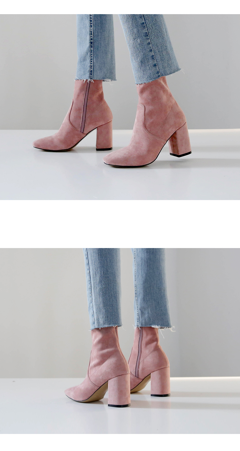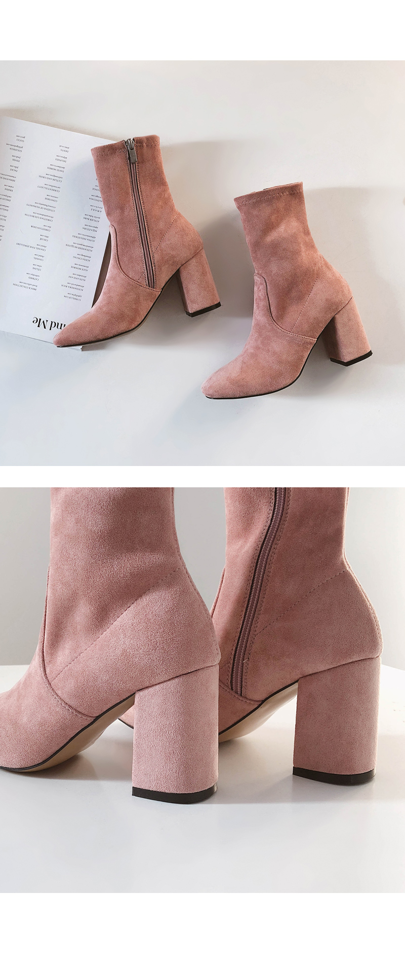 옆 지퍼로 신고 벗기 편안하며 청키한 굽이 높은 굽에도 불구하고 안정적이게 착화됩니다.