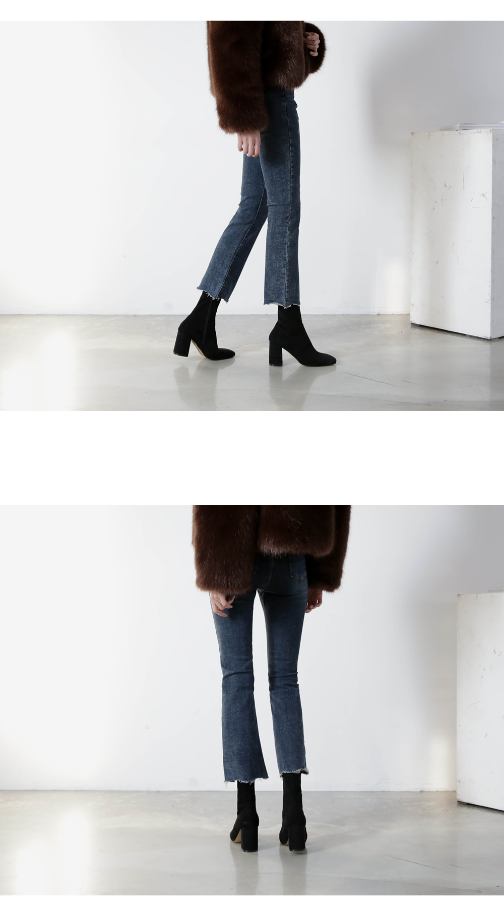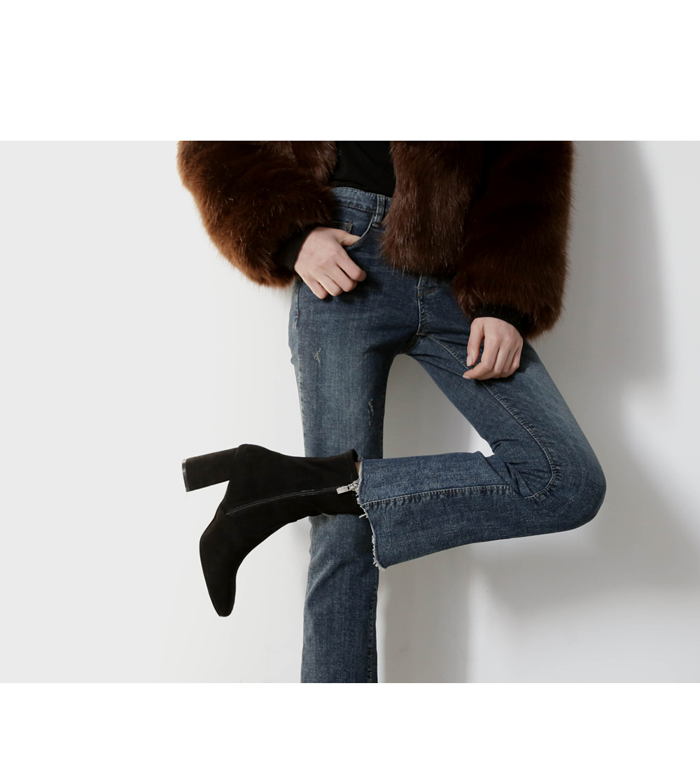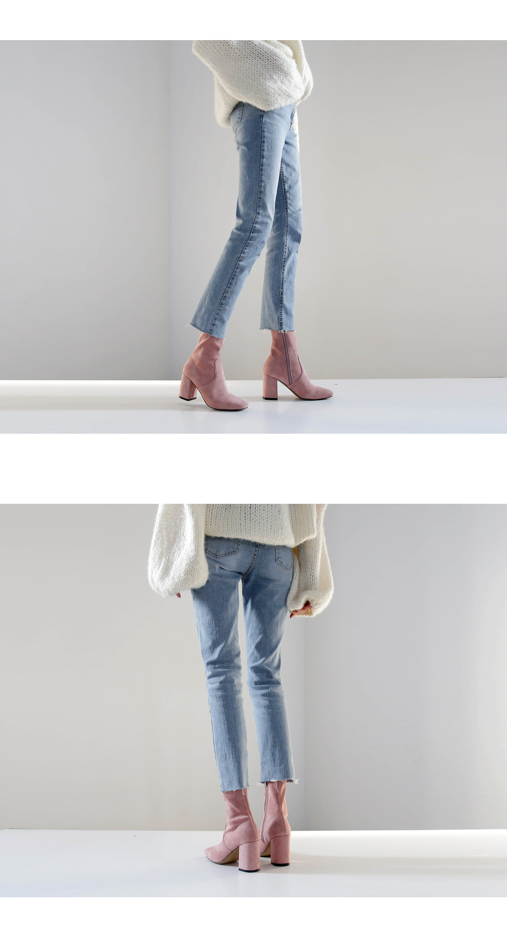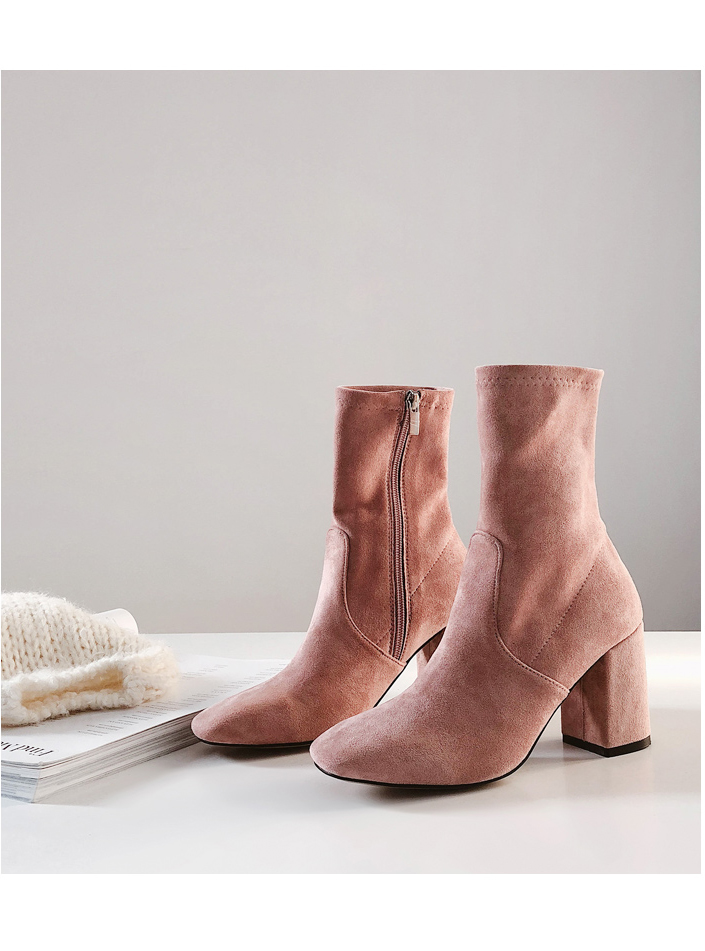 옆 지퍼로 신고 벗기 편안하며 청키한 굽이 높은 굽에도 불구하고 안정적이게 착화됩니다.
