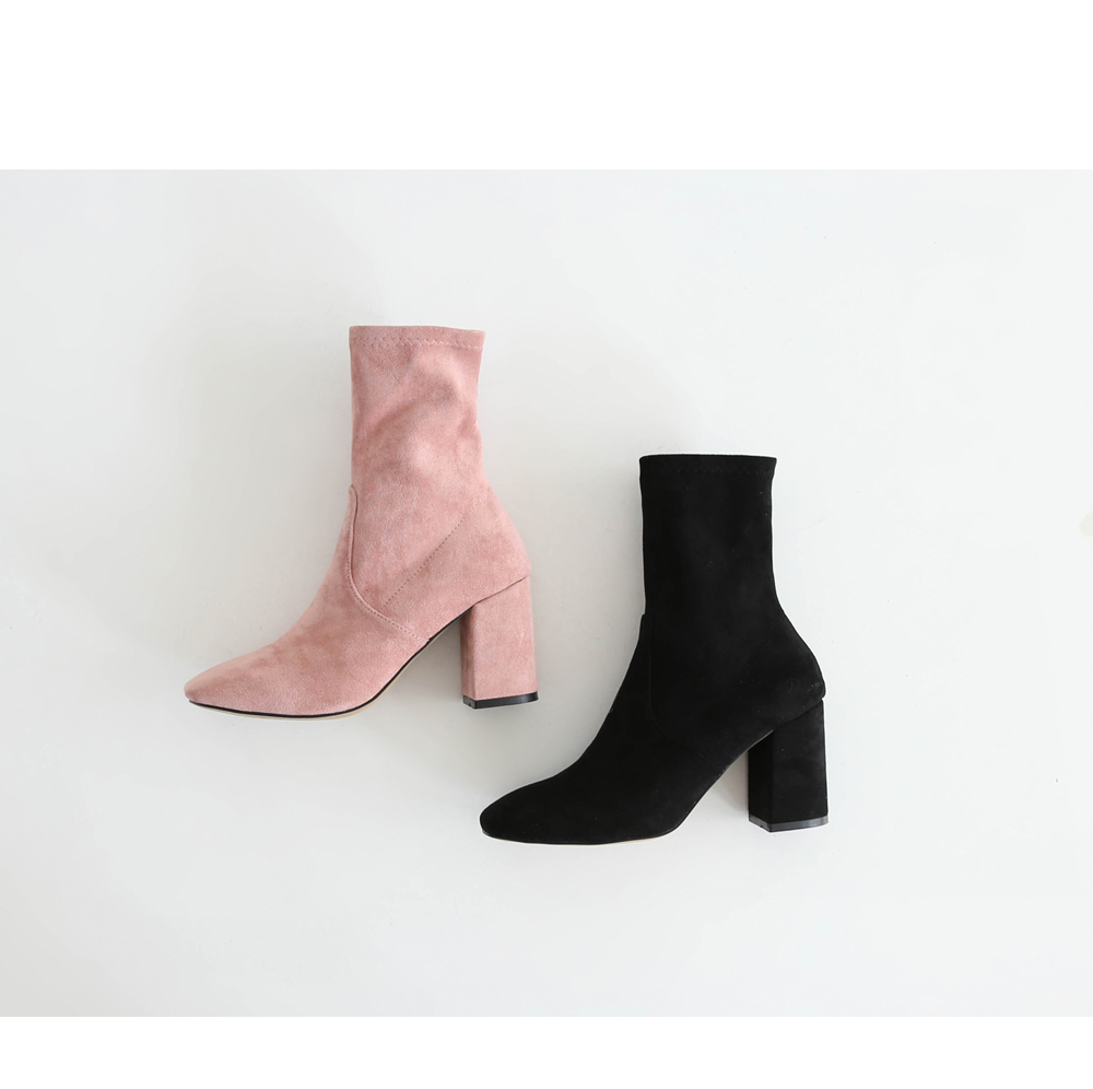 DETAILS - 소재 : 인조스웨이드 - 컬러 : pink,black - 피팅감 : 정사이즈 / 무게 : 보통인편 - 착화감 : 스판성 소재로 신고벗기 편해요 - 모델피팅 : 235
