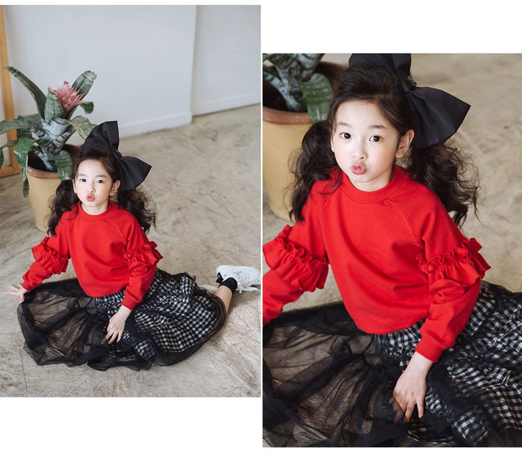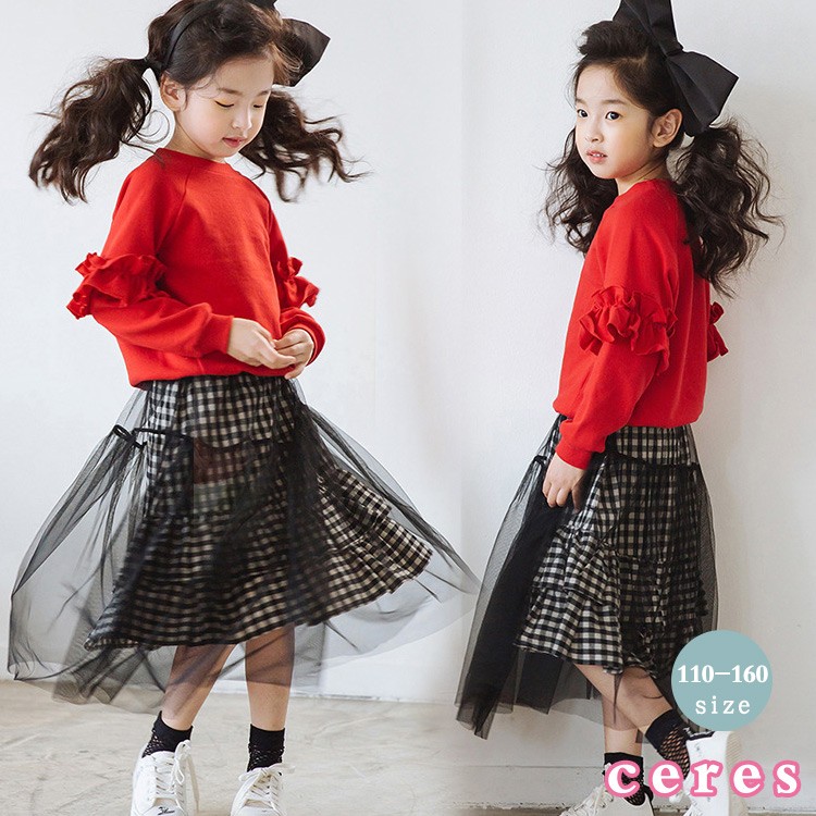 【製品仕様】■商品名子供服 セットアップ 女の子 上下セット キッズ ジュニア レイヤードスカート ■商品説明・トレーナーとスカートのお得な上下セット。・セットアップではもちろん、別々に着ても使い勝手抜群のアイテム☆■サイズ110cm 120cm 130cm 140cm 150cm 160cm■素材 コットン、ニット■色#1レッド×ブラック「検索キーワード」長袖 セットアップ キッズ ジュニア 女の子 ガールズ こども 上下セット 2点セット トレーナー スカート フレアスカート レイヤード フリル袖 袖フリル 韓国子供服
