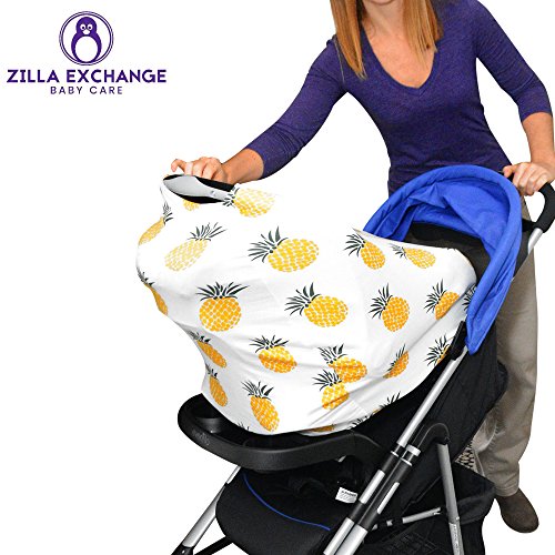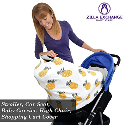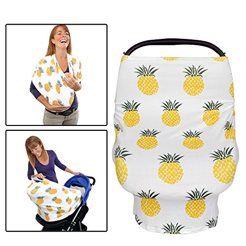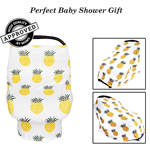 Premium 5 in 1 Multi-use: Baby Car Seat Cover, Nursing Breastfeeding Cover Canopy, Shopping Cart, High Chair, Stroller, Infinity Scarf - Soft Stretchy Pineapple...