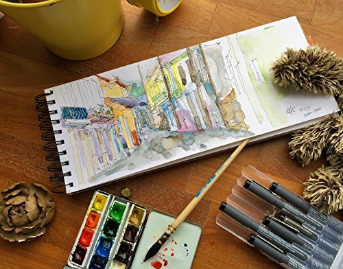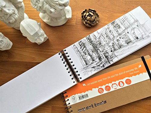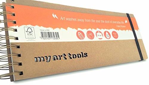 220 gsm, 13 x 5.5 inch, 84 pgs, My Art Tools different perspective journal, spiral bound notebook in unique landscape paper format , a mixed media book address various needs of contemporary artists