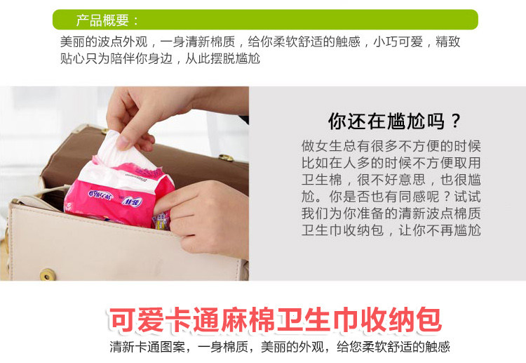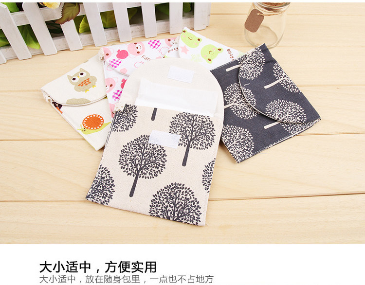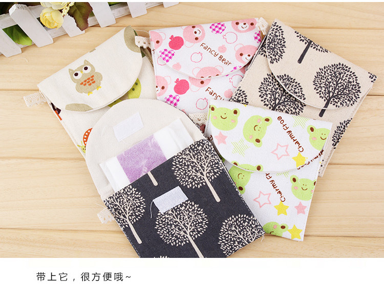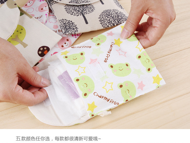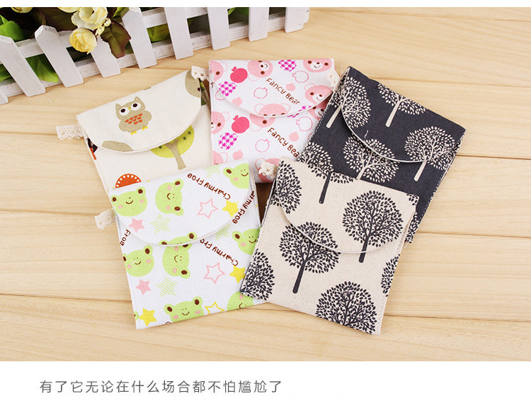 (买1送1)?卡通棉麻卫生巾收纳包卫生棉包姨妈巾包卫生巾袋化妆包