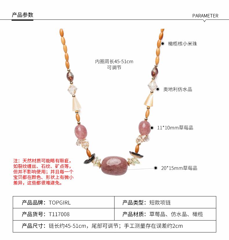 草莓晶吊坠奥地利水晶首饰品短款锁骨项链女百搭