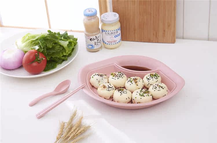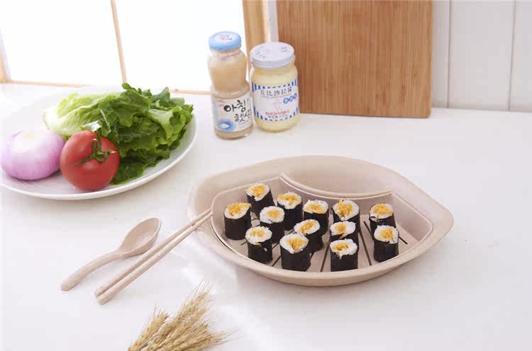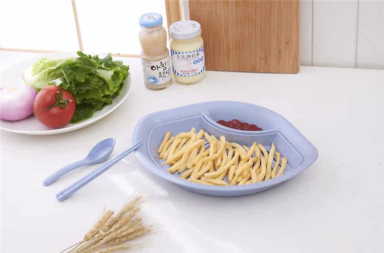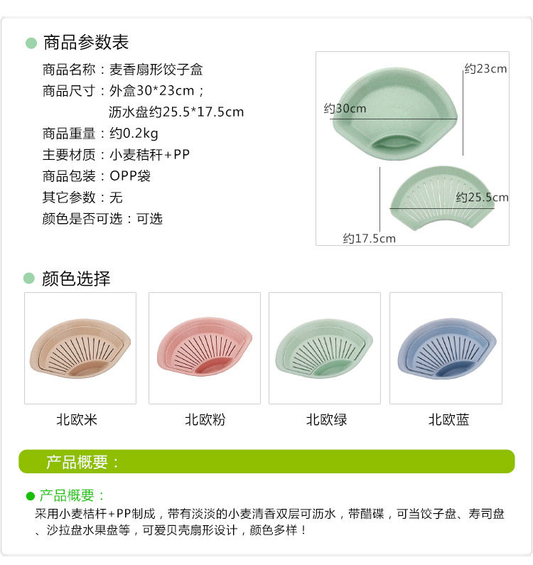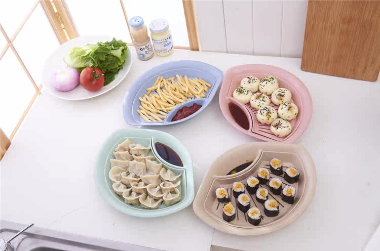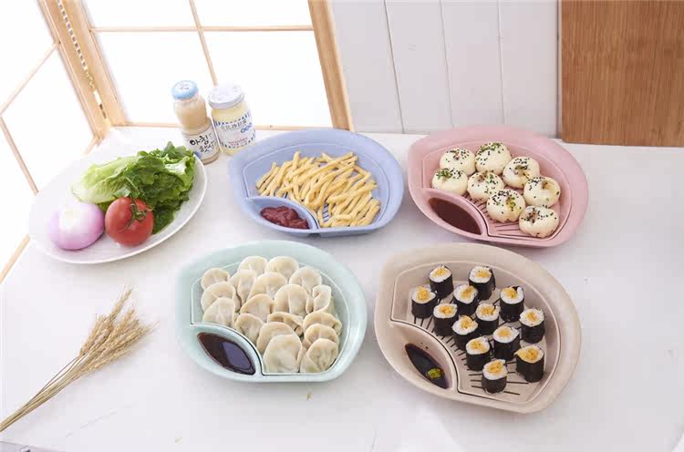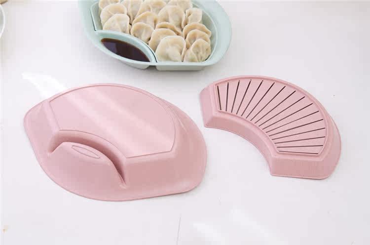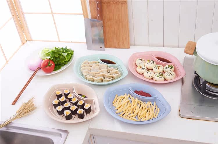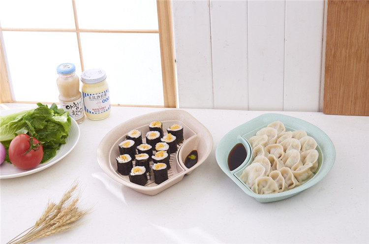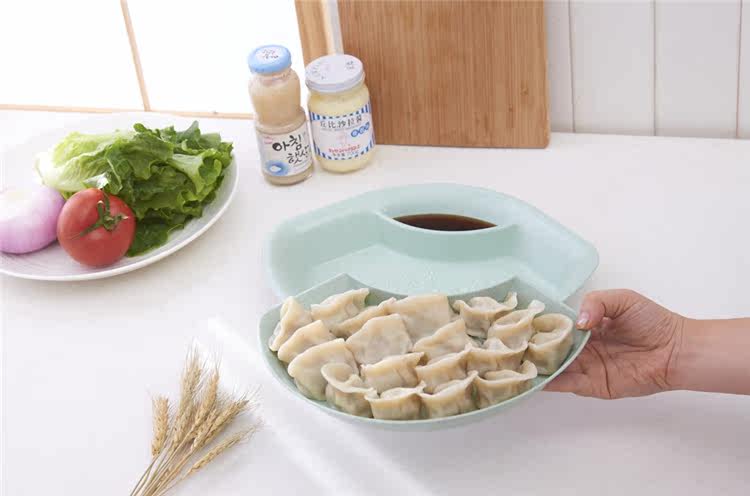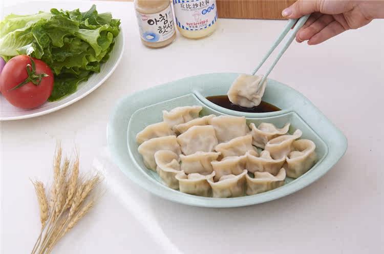 小麦秸秆饺子盘厨房双层沥水盘带醋碟水饺盘创意扇形餐盘水果盘