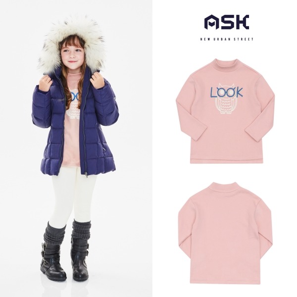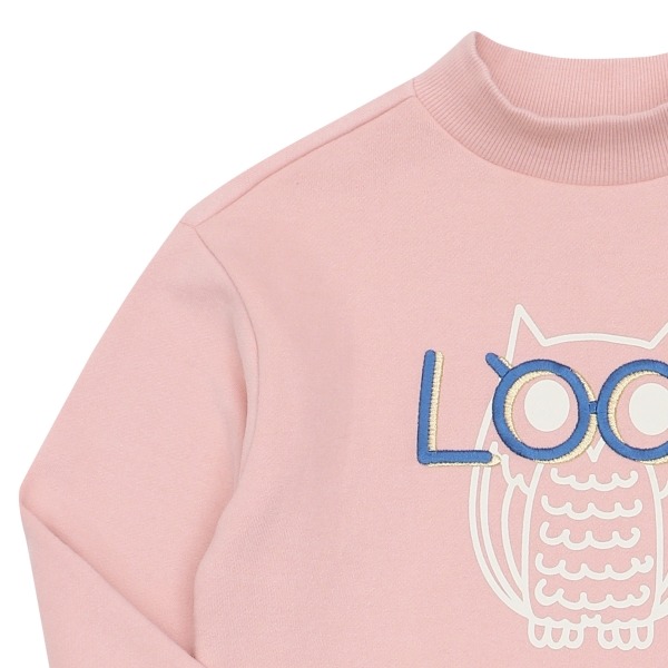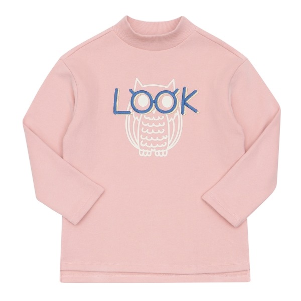 부엉이를 포인트로한 반폴라형 겨울 기모티셔츠