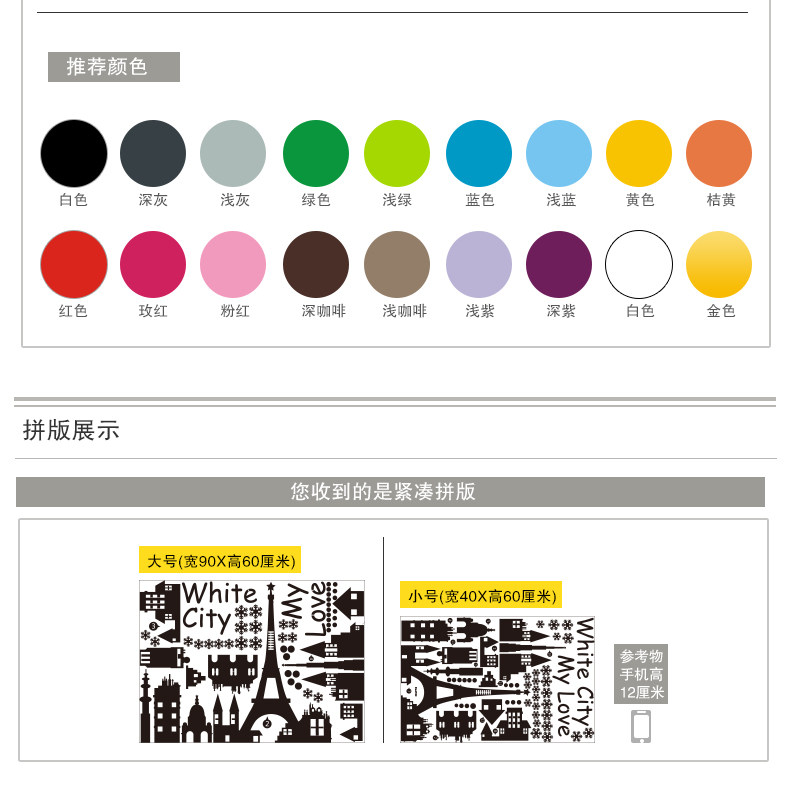 Brand: small Aiai Wall Stickers Type: waterproof wall stickers Material: environmental protection PVC, the back with rubber, Style: European Pattern: Construction Pricing Unit: set Wall Sticker Style: Plane Wall Stickers size: Small:W170cm*H65cm Large:W250cm*H110cm Sizes, "you receive the goods and typesetting" size and "collage after size reference" Our tile size for reference only, you can combine according to room size freedom