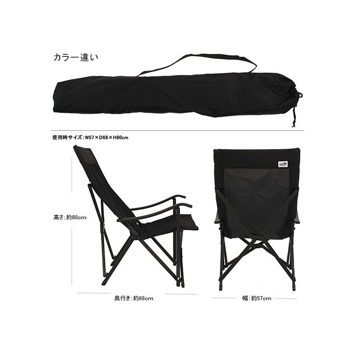 ●소재:씨트/코튼100%고, 프레임/알루미늄 합금●사이즈:(사용 시)W57×D68×H80cm,(수납 시)W14×D14×H108cm●내하중:80kg●좌면양단의 프레임의 높이:약48cm●좌면포부(엉덩이 부분):약36cm●중량:약2.9kg●부속품:나일론 수납 케이스●원산국:중국