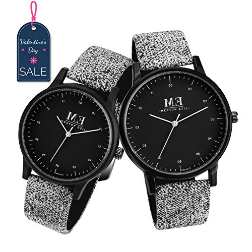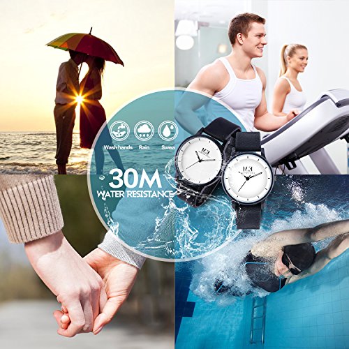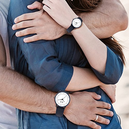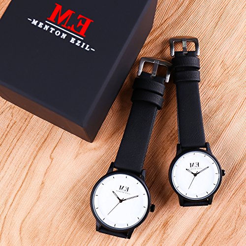 ♥SIMPLE DESIGN♥ Casual couple watches with stainless steel black case, easy-to-read white dial with soft cattlehide leather watch band