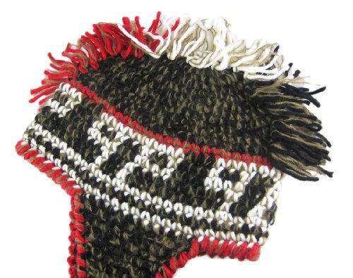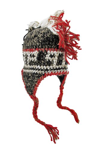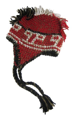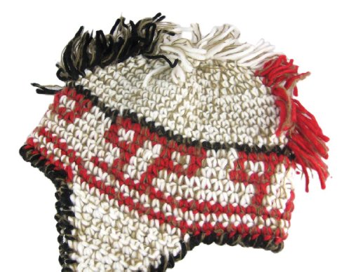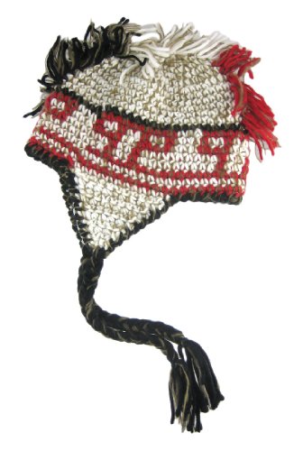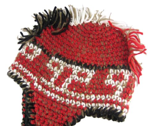 Studio : Zeckos Publisher : Zeckos Binding : Apparel Product Description This awesome black, brown, tan and red knit pilot hat features a Mohawk style fringe on the top and has braids hanging down from the ear flaps. The hat is 100% acrylic, and is one size fits most. It has a fleece lining around the ears and forehead, so it`s sure to keep your head and ears toasty warm. Sized to fit most adults, it`s a great look for winter, and is a sure conversation starter. 0