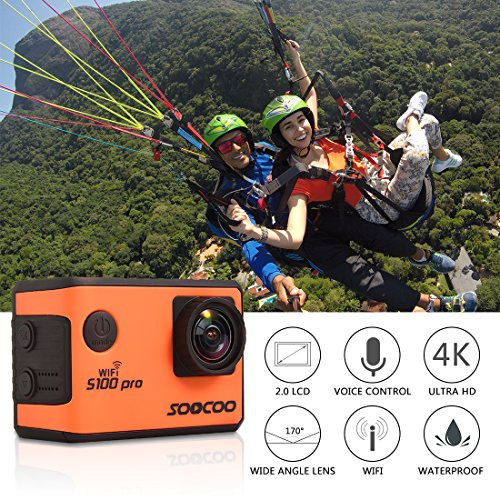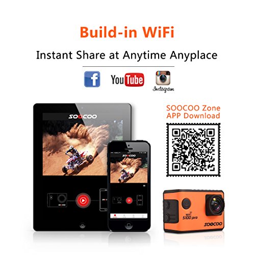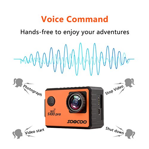 - Diverse Control Functions: Voice control-support English voice control, hand free to control the action camera. Features a 2.4GHz wireless remote control. Wifi control-scan the QR code on the manual and download the "SOOCOO ZONE" app. Easily control the action camera and manage the photos & videos on your phone. Remote control up to 15 meters(49ft), wireless range up to 10m(33ft)