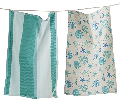 -. Title : Tag 205823 Oceanside Dishtowel, Set Of 2, Aqua, 18"W x 26"L