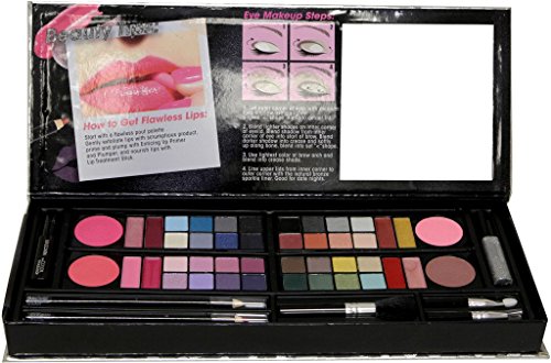8 lip glosses, 1 liquid eyeliner, 1 mascara, 4 blushes, 32 eyeshadow