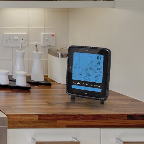 -. Feature : Uses patented Self-Calibrating Technology to provide your personal forecast of 12 to 24-hour weather conditions / 5-in-1 Weather Sensor records outdoor temperature; relative humidity; rainfall; wind speed and wind direction / Programmable weather alarms for temperature; humidity; wind; rain; dew point; heat index and storm alerts / Weather Ticker streams real-time data including the moon phase, indoor comfort level, "feels like" temperature and more / Wireless range of up to 330 feet (100 meters)
