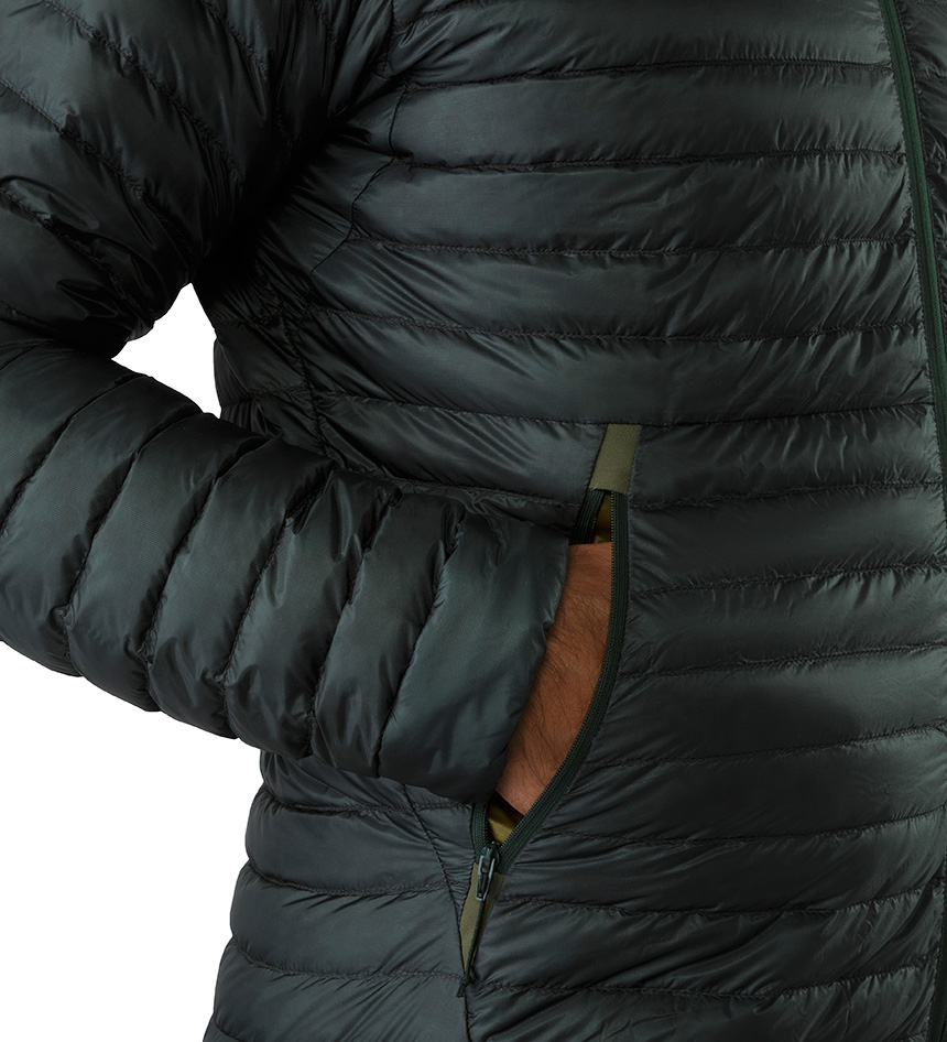 무게 대비 탁월한 보온력을 자랑하는 초경량 다운 재킷. 아크테릭스 에센셜 제품 가운데 가장 가벼운 다운 재킷으로 휴대성이 뛰어나다.