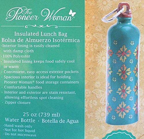 Pioneer Woman Insulated Lunch Bag Tote And Water Bottle - Vintage Geo