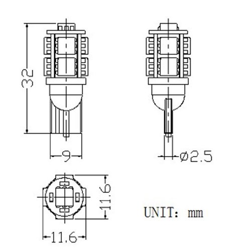 Part Number:T10-9SMD-Y Item Weight:0.32 ounces Product Dimensions:4 x 3 x 1 inches Item model number:T10-9SMD-Y Shape:t10 Power Source:DC Voltage:12 volts Wattage:1.08 watts Item Package Quantity:1 Type of Bulb:LED Luminous Flux:65 Number of Handles:1 Certification:Not Applicable (N/A) Special Features:SMD5050 chip Usage:Indoor use only Batteries Required?:No Shipping Weight:0.32 ounces (View shipping rates and policies)