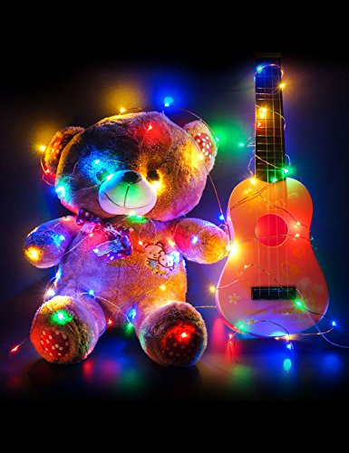-. Feature : Multi-color:This LED string lights come in RED, GREEN, YELLOW, BLUE and PURPLE lights. Shinning and colorful, definitely make your place like a fairytale world. / Moldable Shape: It is very flexible and will allow you to wrap the light set around whatever projects you may choose: wreaths, decorative trees, weddings with bouquets, Easter baskets and so on. Beautify your patio, deck, front porch, family room, living room, kitchen, anywhere. Indoor or outdoor use. / Easy Operation:need 3 battery to light up ,and 6 battery can bring a strong shine for a long time.Press the button to use,Safe to touch .(Attention:This product is battery powered, and the package does not contain batteries) / Cost effective:Enexpensive to operate as they draw so little power, use them all year long with no worries. / Waterproof design:The string lights are waterproof ( but the battery box is not) . can work perfectly in the rain .