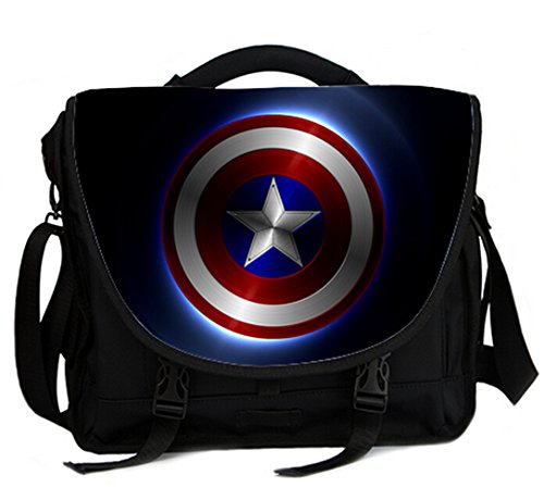 -. Binding : Personal Computers -. Brand : Laptop Bags -. Feature : Made of durable oxford fabric / Size: 15.75" x 4.75"x11.0" / Sized for 15 Inch Notebook Laptop / 2 large front pockets and rear organizational pocket / Magnetic silencers, velcro, and clip flap fasteners -. Label : Specific and Personal Bags -. Manufacturer : Specific and Personal Bags -. ProductGroup : PC Accessory -. ProductTypeName : CARRYING_CASE_OR_BAG -. Publisher : Specific and Personal Bags -. Studio : Specific and Personal Bags -. Title : Captain America Shield Print Print 15 inch Laptop Bag Shoulder Cross Body Bag