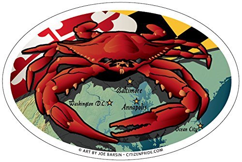 Maryland Red Crab Oval Magnet, 6 x 4 inches - Euro Car Fridge Locker Vinyl Magnet