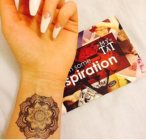 -. Feature : Mandala Flower Tattoo is 2 1/4" x 2 1/4" in size / Set includes 2 temporary tattoos / Will last 1 - 3 days / Easy to apply with water / Remove with any household, skin safe oil