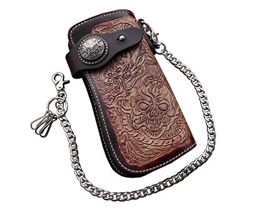 -. Title : Dragon Skull Motorcylce Biker Cow Leather Card Holder Handmade Wallet With Chain L66