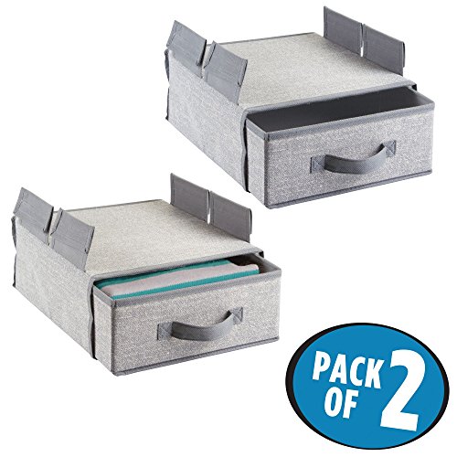 mDesign Fabric Hanging Closet Storage Organizer Drawer for Wire Shelving - Pack of 2, Gray