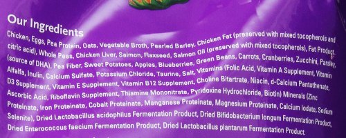 -. Feature : Natural, holistic dog food formulated for toy and small breed dogs / Features butcher-quality chicken, whole egg and a bounty of farm-raised vegetables / Contains no artificial colors, flavors or preservatives, gluten, wheat or corn, rendered meats, poultry or fish, animal or plant by-products / Made in the USA