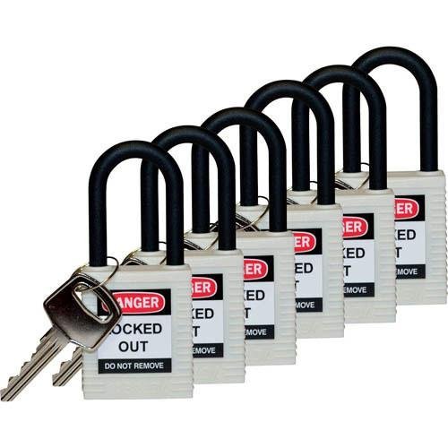 Brady 123350 Lockout Padlock, Keyed Alike, 1/4", White