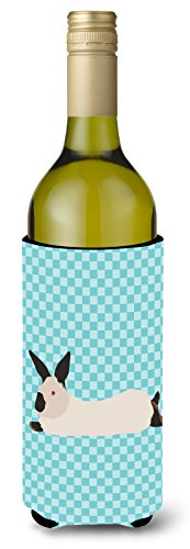 Caroline's Treasures BB8141LITERK California White Rabbit Blue Check Decorative Bottle Hugger, 750 ml, Multicolor