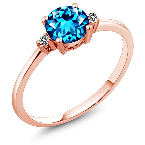 -. Title : 10K Rose Gold Diamond Ring Set with Round Kashmir Blue Topaz from Swarovski