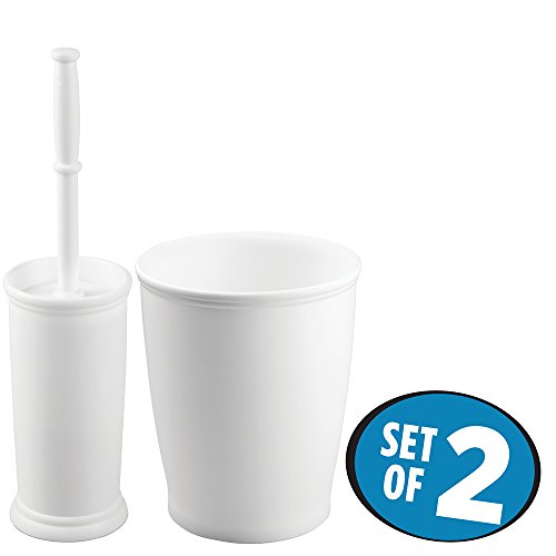 mDesign Wastebasket Trash Can, Toilet Bowl Brush with Holder for Bathroom Storage - Set of 2, White