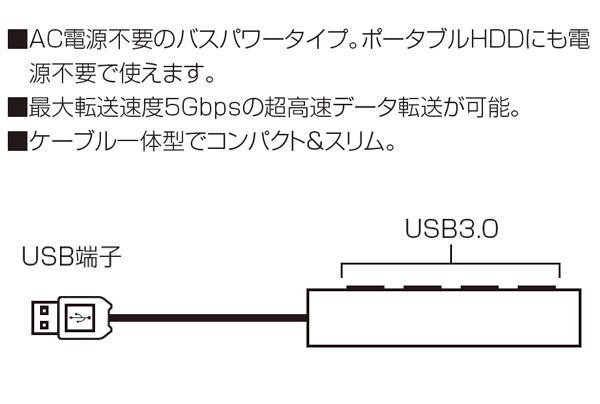 | スリムボディ&超高速でデータ転送できる「USB3.0」4ポートUSBハブ。 |
