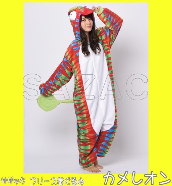 奇抜な色合いが可愛い「カメレオン」の着ぐるみです。あたたかいフリース素材で着心地もGOOD!!パジャマやお部屋着にもオススメです☆