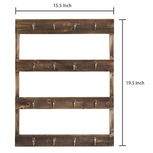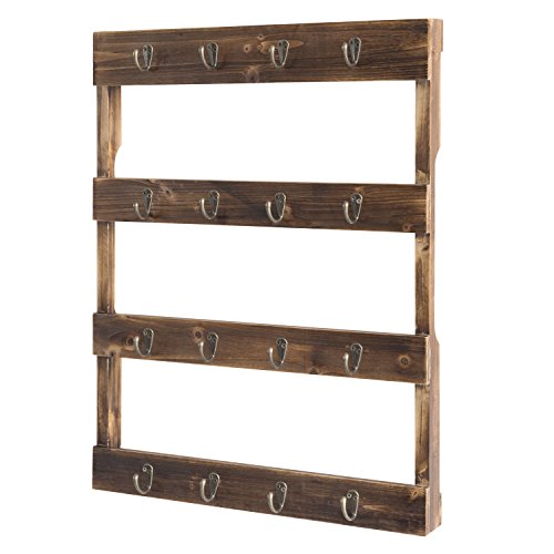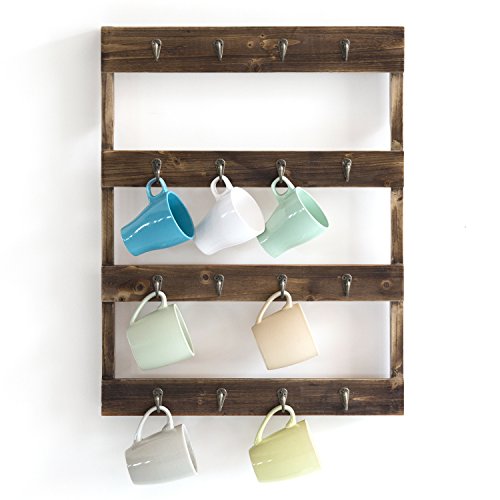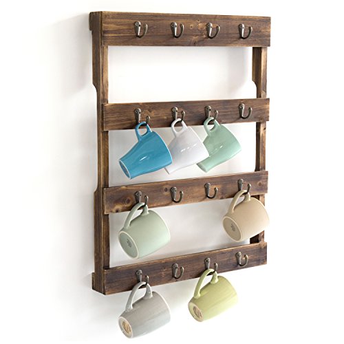 Wall Mounted 16 Hook Torched Wood Coffee Mug Cup Holder Display Rack