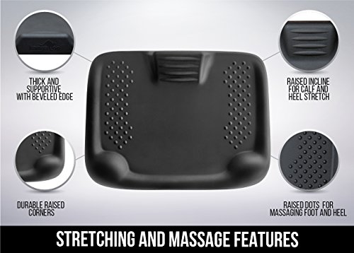 How can I use this mat? The varied terrain is great for stretching and massaging your feet while you work. Use the raised incline for calf and heel stretching, the durable raised corners for massaging the palms or balls of your heels and arch, or the raised dots shoulder width apart for massaging your feet and heels and toes.