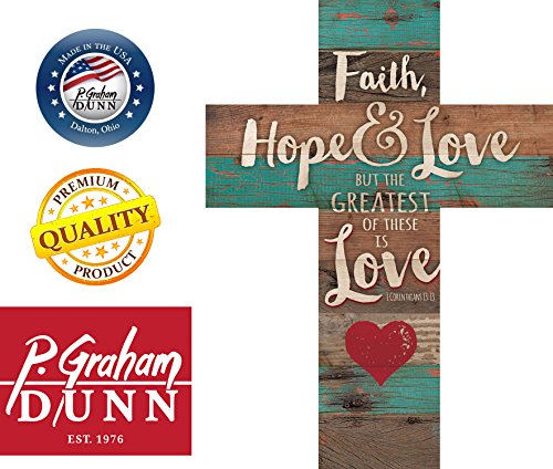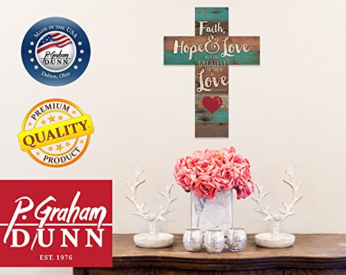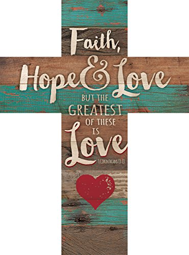 Faith Hope & Love 1 Corinthians 13:13 Red Heart Rustic 14 x 10 Wood Wall Art Cross Plaque