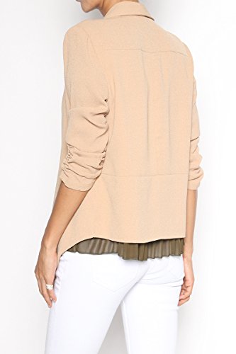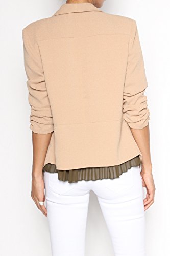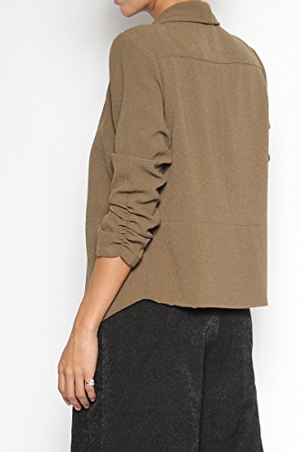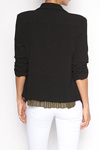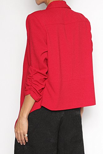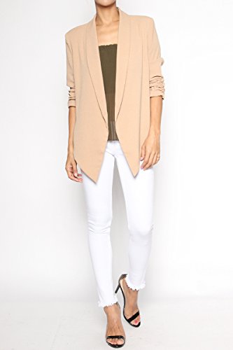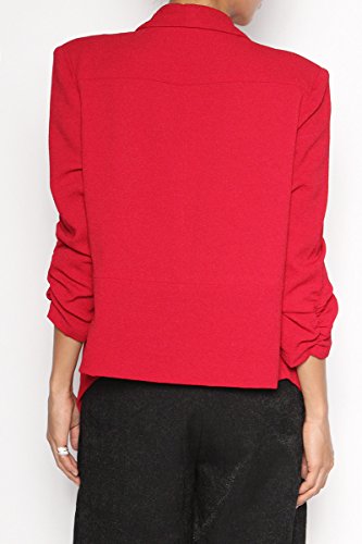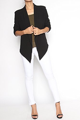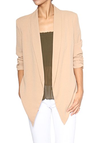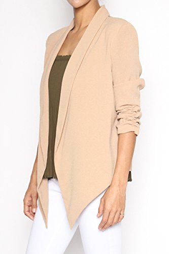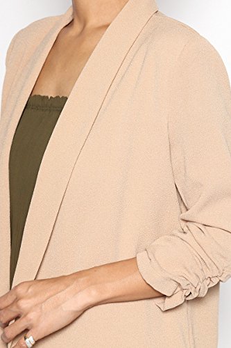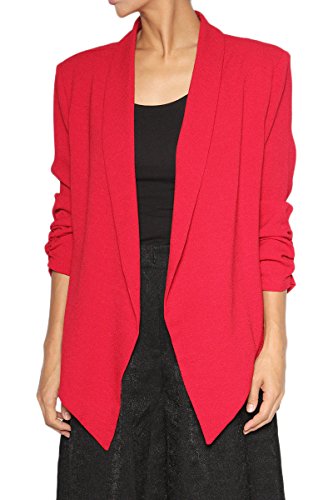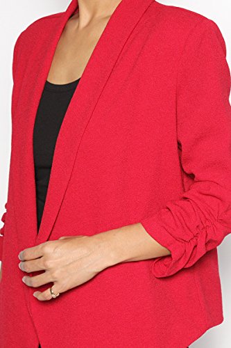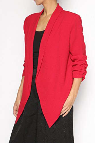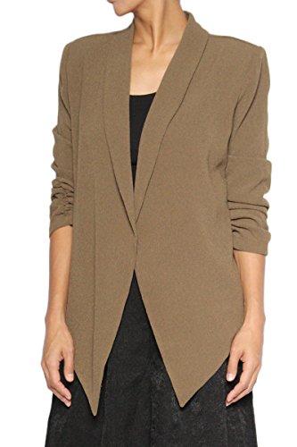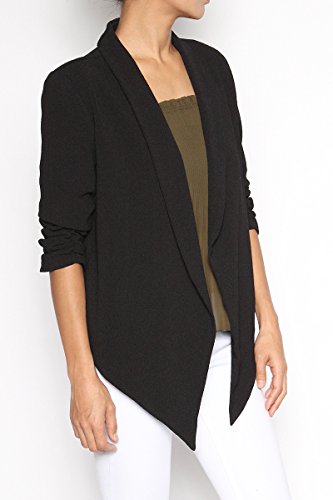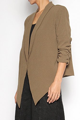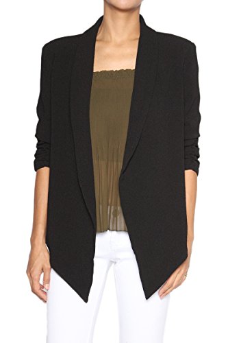 TheMogan Women's Ruched 3/4 Sleeve Draped Oversize Crepe Open Blazer Jacket S~3X