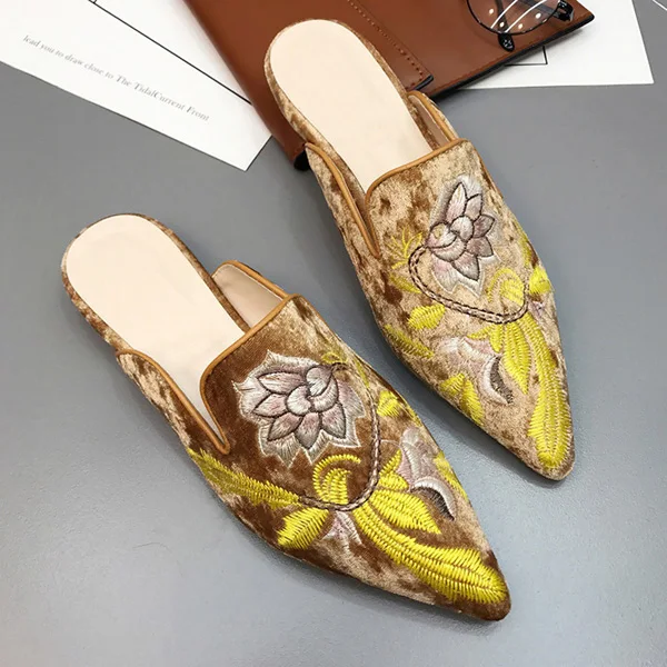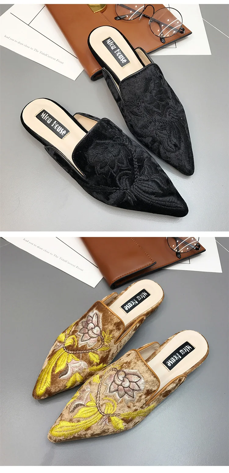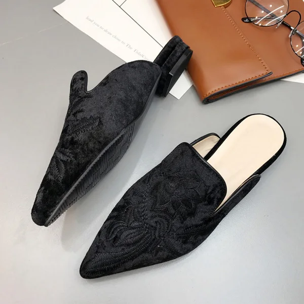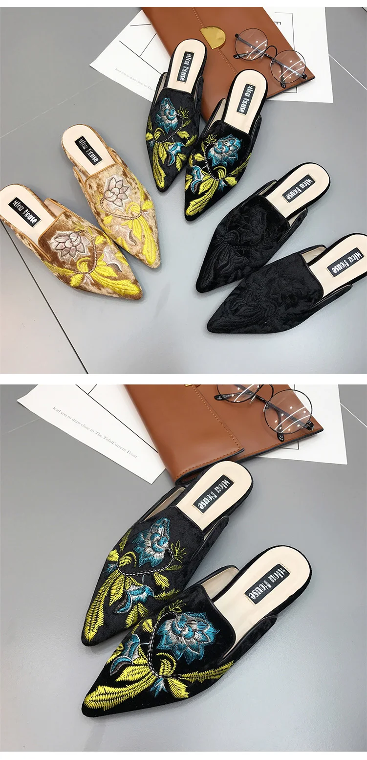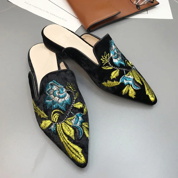 2017 Women Platform Slippers:Muller Swan Suede 3d Embroidery