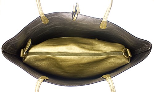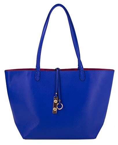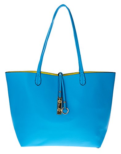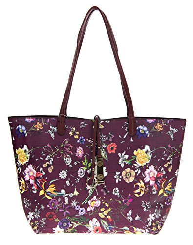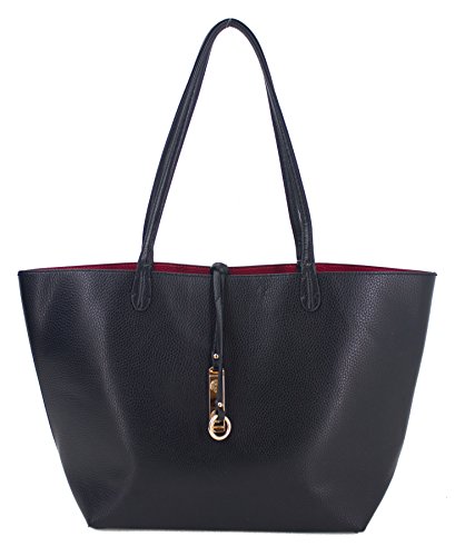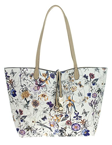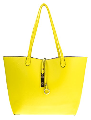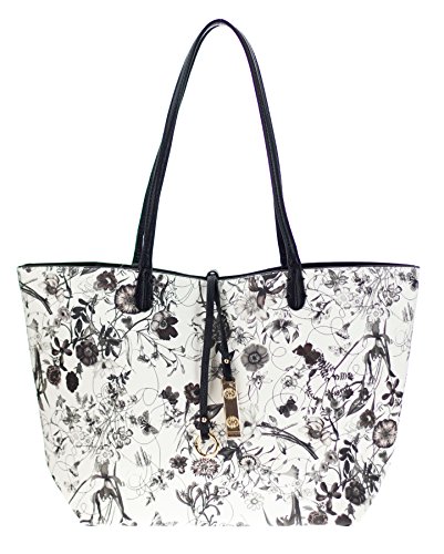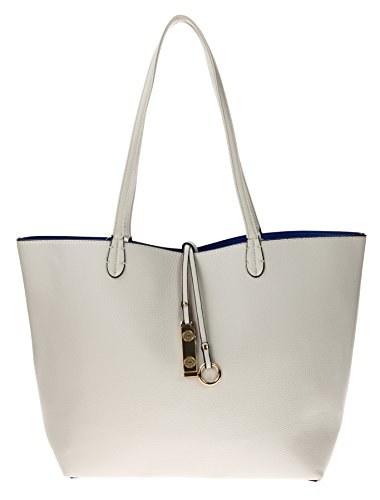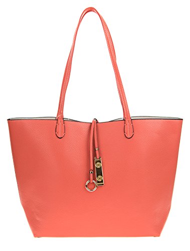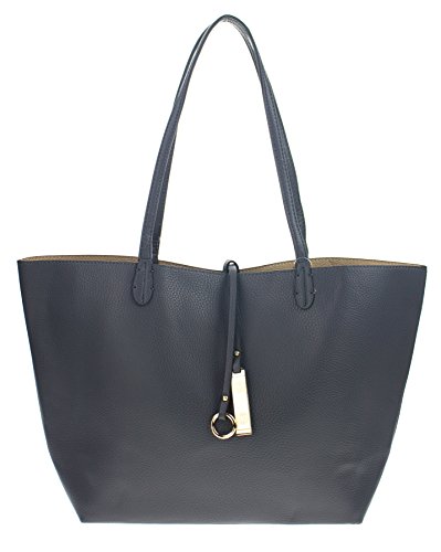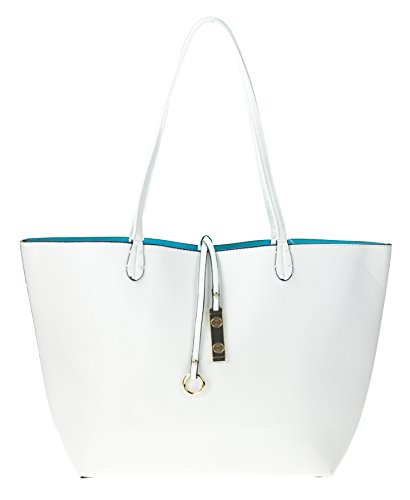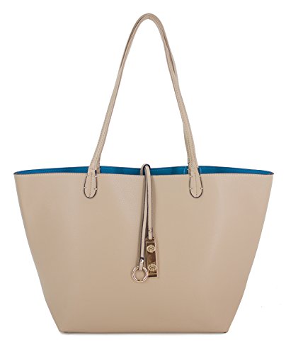 Features: reversible, change the way it looks by turning the tote inside out; high quality classic design tote with detachable pouch; decorative string with logo; 1 sunglass a1 cell phone and 1 wall zipper pocket in pouch.