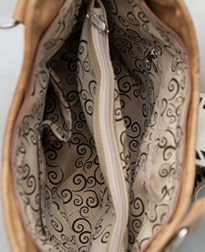 Made from high quality premium brown faux/imitation PU leather with silvertone studs, blue conchos, colorful embroidered designs, laser cut tooled pattern on top and on trim, decorated with silvertone horse, and detachable HW Collection key ring/purse charm on the front