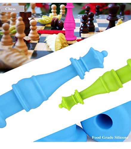 LSD FDA-approved Baby Silicone Teether - Chewable Pencil Topper,Safe Chess Shaped,Perfect for Children Study with Pencil,4 Pack (Purple, Green, Blue, Red)