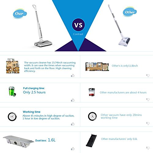 -. Feature : LED screen to show its power capacity, easy to know the battery balance / Easy operation by a single button. 8.3 LB light weight, Bag free / Cordless type, no need to worry about pling in rooms. Detachable aluminum tube in 2 parts for easy packing / HEPA-Style Filter, It traps microscopic allergy triggers such as dust mites, mold spores and pet dander, ensuring that expelled air is cleaner.