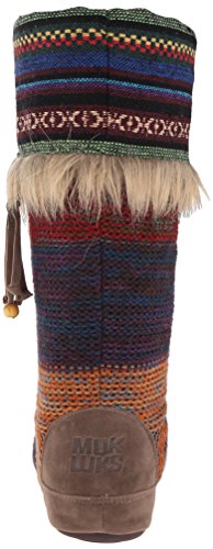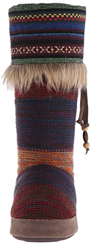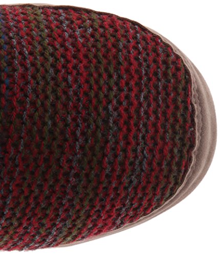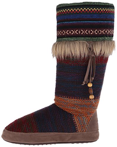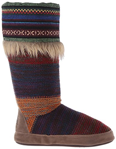 Take a peak at our Serape Collection inspired by Mayan blanket fabrics with festive and colorful blended motifs. The Maribelle has an ombre pattern with a cute fur accent and beaded tassels. This style is made of 100% Acrylic Upper, 100% Polyester Fleece Lining, and has an indoor/outdoor TPR Sole. Maribelle is available in sizes S (5-6), M (6.5-7.5), L (8-9), and XL (9.5-10.5). Spot clean, no bleach, and lay flat to dry. Made in China.