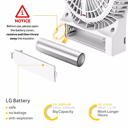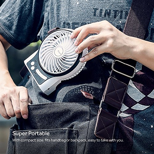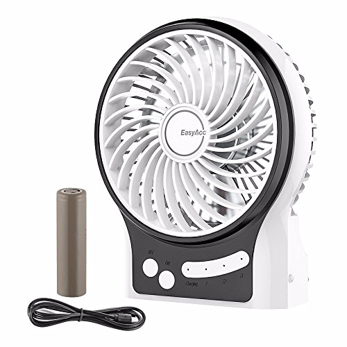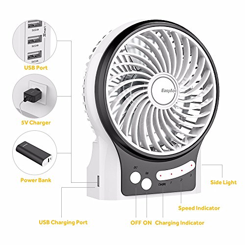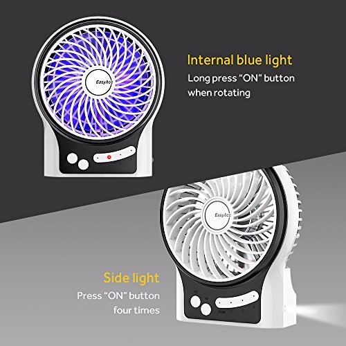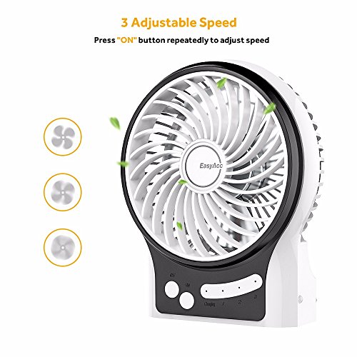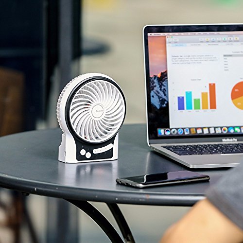 EasyAcc Mini Desktop USB Fan Rechargeable Portable Personal Fan with Upgrade LG 2600mAh Rechargeable Battery, Internal and Side Light 3 Adjustable Speed for Both Indoor and Outdoor - White