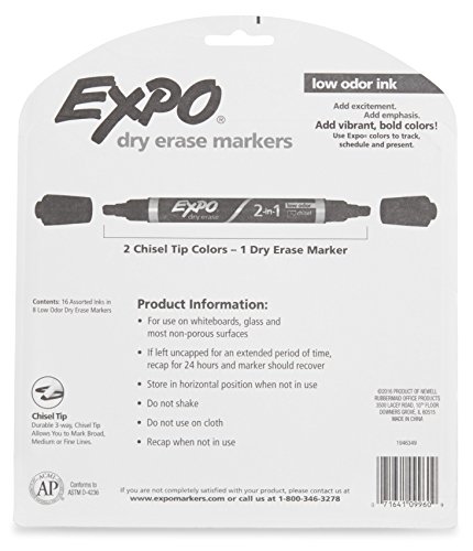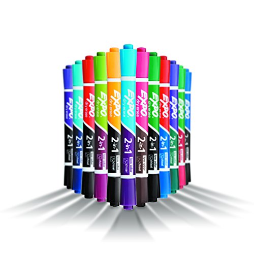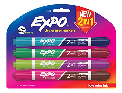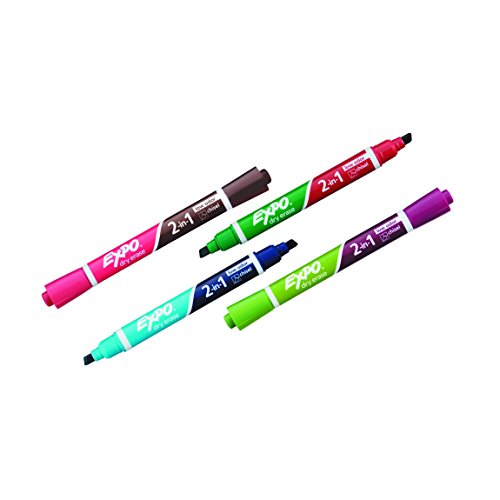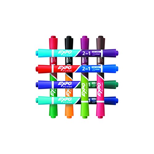 EXPO 2-in-1 Dry Erase Markers, Chisel Tip, Assorted Colors, 8-Count