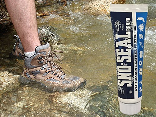 Snow-Seal Original Beeswax Waterproofing protects leather from rain, sun, snow and salt. The beeswax formula dries to a solid wax that "stays put" in the surface of the leather so it lasts longer. Our competitors' greases, oil and animal products are able to migrate through the leather till they clog all the pores. These waterproofing products fill the natural spaces that are supposed to absorb perspiration and insulate. In addition, animal fats weaken and rot leather. The tannery worked hard to remove the fats and preserve the leather, so it's hard to imagine why you'd put it back on. Snow-Seal will help you feel more comfortable in Gore-Tex fabric lined boots because it allows the Gore-Tex-absorbed perspiration to escape out of the leather. And not only will Snow-Seal keep you warm and dry, it'll also help you from getting tired. A typical leather boot can soak up to a pound of water. That means you lift an additional 2,212 lbs. to walk one mile. Snow-Seal keeps the whole boot dry, warm and light.