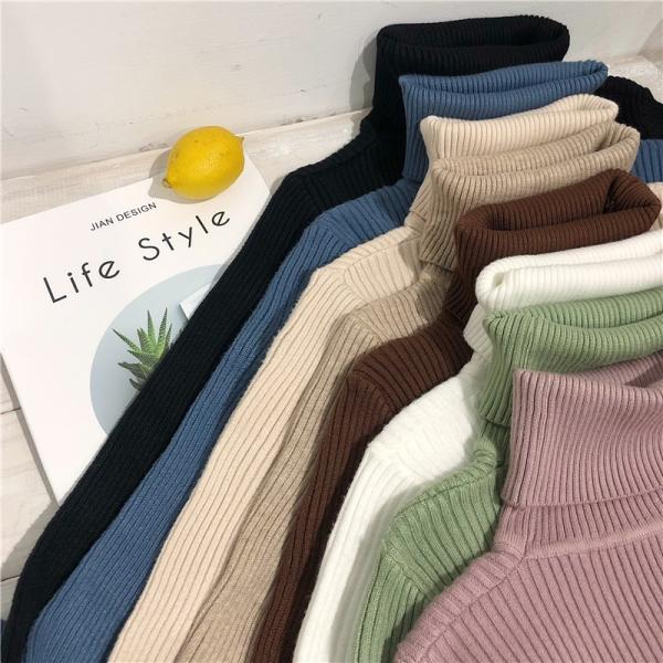 ソリッドなカラーリングでファッションに合わせやすいハイネックセーター